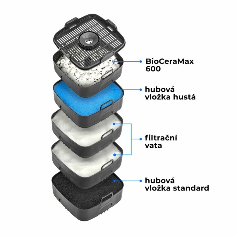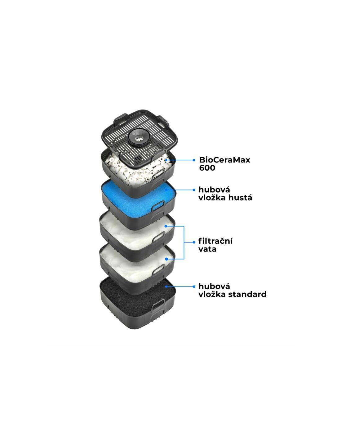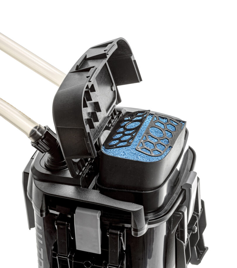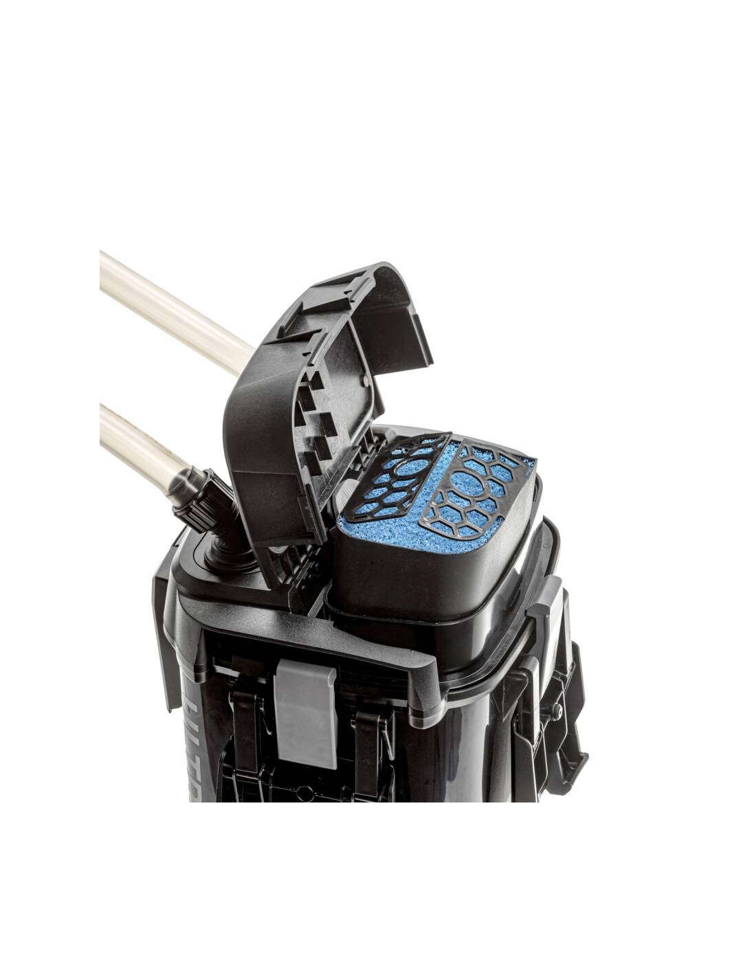 Con su 5 cestas de filtración (1.9 l cada uno) y su prefiltro, elUltramax BT ofrece una capacidad total de 16 litros. Puede colocar diferentes medios (mecánicos, orgánicos, químicos) para crear una combinación adecuada de las necesidades específicas de su Acuario.