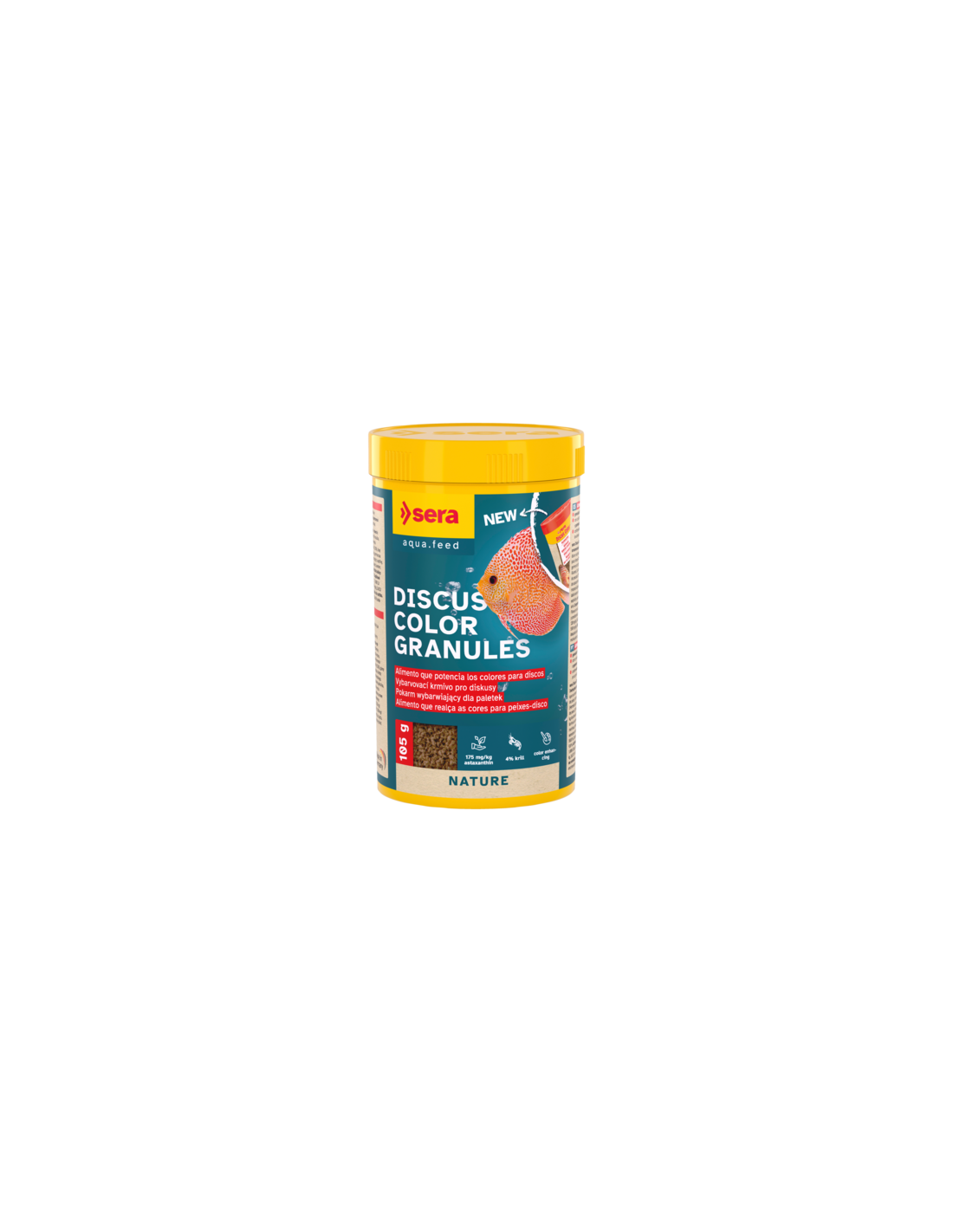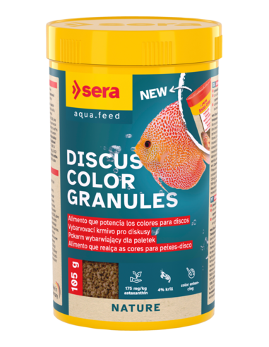 Discus Color Granules es el alimento que potencia los colores, a base de granulado blando cuidadosamente elaborado, sin colorantes ni conservantes, para todos los discos.