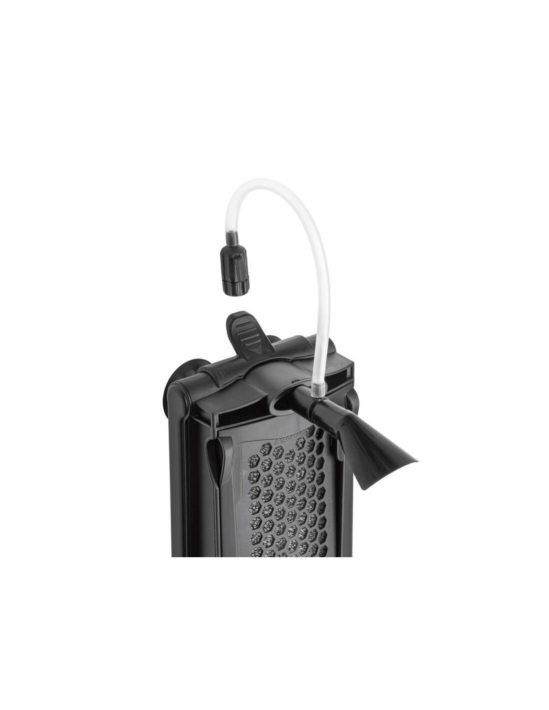 Puede ajustar fácilmente el caudal de agua con el filtro Neo 300. El filtro cuenta con un regulador de capacidad que le permite ajustar la intensidad del flujo según sus necesidades. Este modelo también es perfecto para acuarios pequeños y nanoacuarios. Además, el filtro cuenta con un tubo de aireación que garantiza una oxigenación adecuada del agua del acuario. El tubo de aireación funciona con una boquilla direccional conectada a la salida del filtro.
