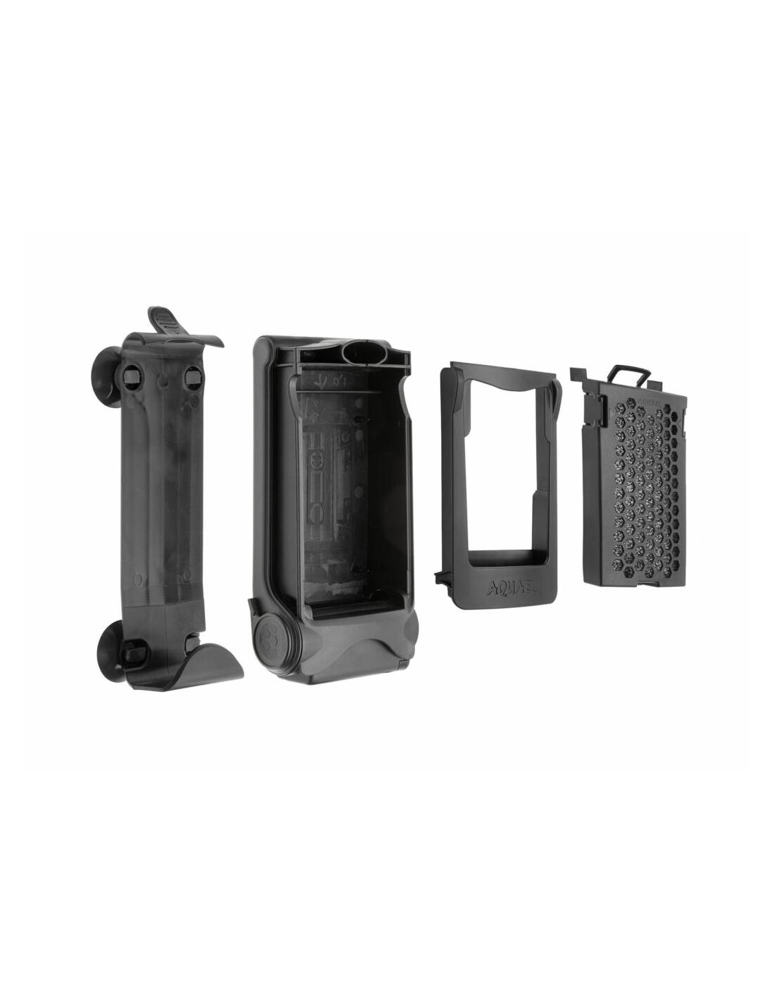 El filtro utiliza una práctica solución de montaje. El soporte se fija con cuatro ventosas. La cesta con el módulo filtrante se desliza suavemente al presionarla. Esto facilita enormemente el mantenimiento del filtro: el motor permanece en el agua todo el tiempo, mientras que el elemento filtrante se puede extraer para limpiarlo o reemplazarlo.