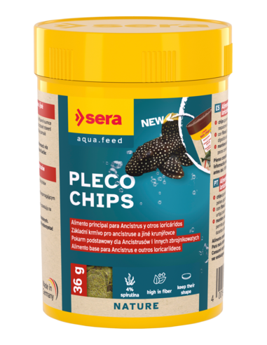 Pleco Chips es el alimento principal, sin colorantes ni conservantes, para peces del fondo raspadores y succionadores, como los Ancistrus y otros loricáridos.