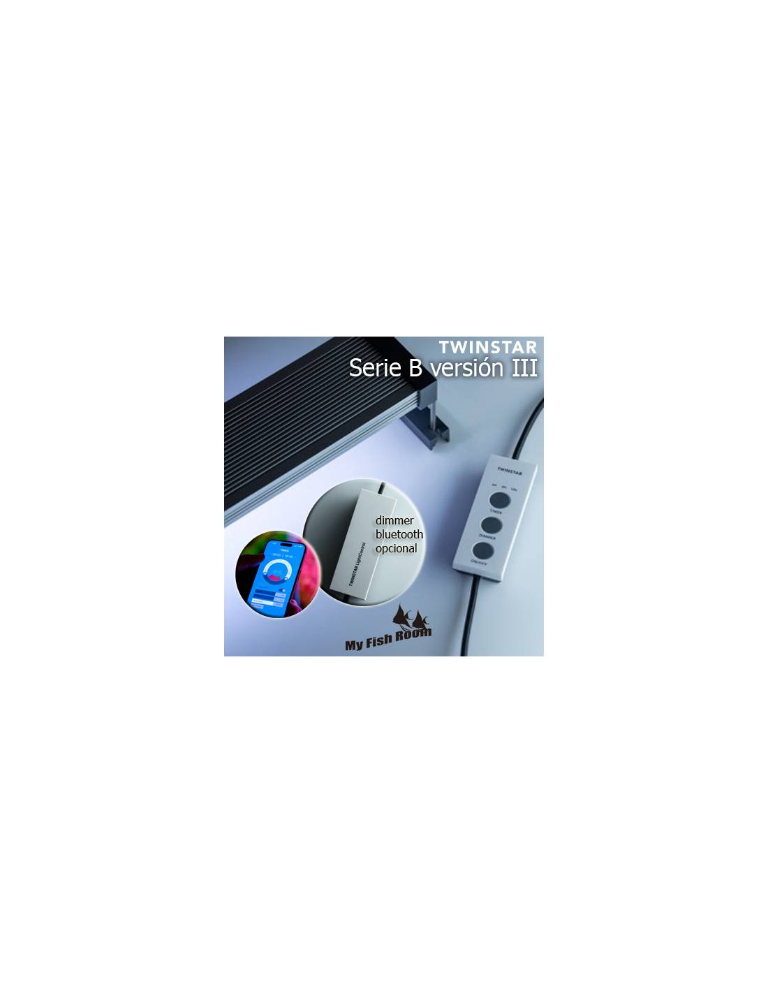 NOVEDAD!!! Pantallas LED Twinstar Light 60B nueva versión III con dimmer manual (suministrado) y opción Bluetooth LightControl Standard (accesorio opcional) via APP de Twinstar - Pantalla LED recomendada para acuarios de hasta 70cm. Iluminación LED de espectro W-RGB completo para acuarios plantados de bajo y medios requerimientos a un ¡PRECIO INSUPERABLE!